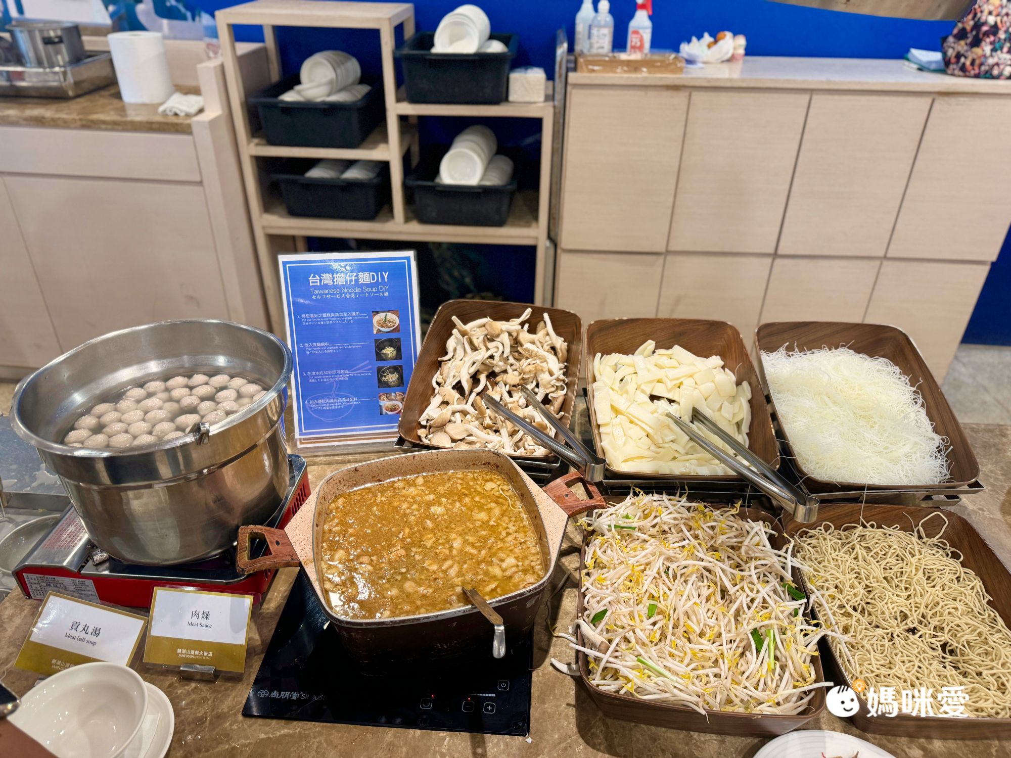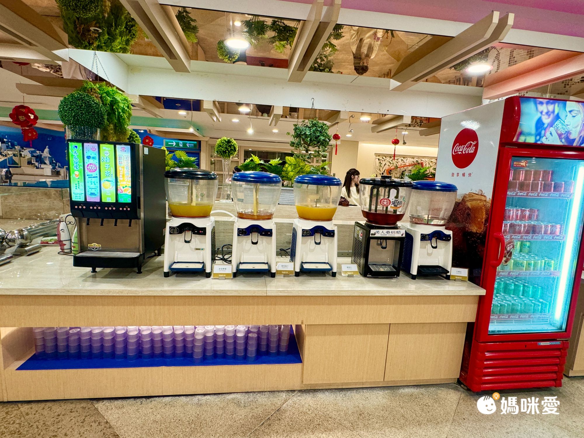 餐點選擇很多,牛排、義大利麵、擔仔麵、生魚片、扇貝、生菜沙拉、蔬食、蛋糕、甜點、水果、果汁、汽水還有孩子們最愛的冰淇淋🍦