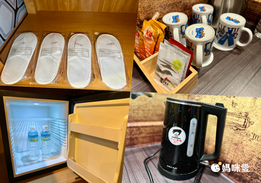 熱水壺、冰塊桶、一次性備品飯店都有提供。咖啡是雲林古坑的酷咖啡喔!
