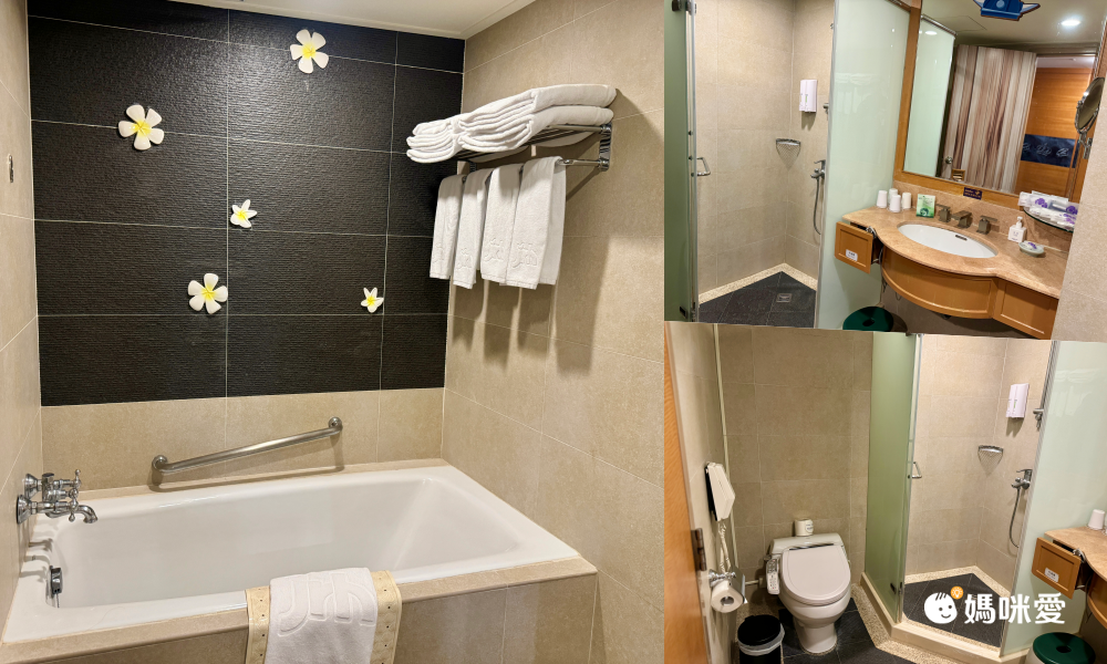 浴室乾濕分離,有浴缸及免治馬桶,浴室鏡面上也有小威的帽子的小巧思