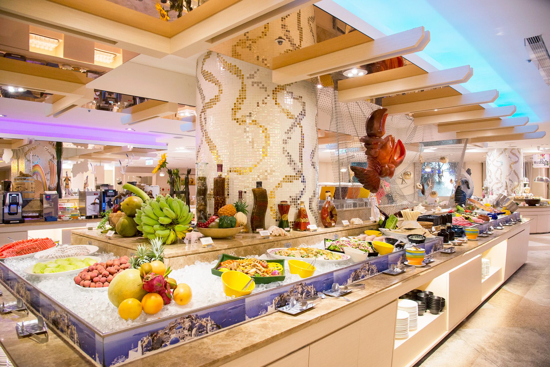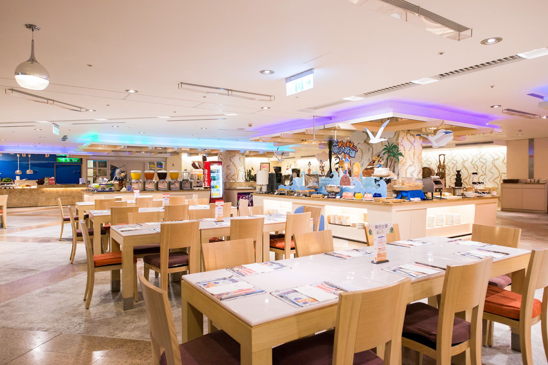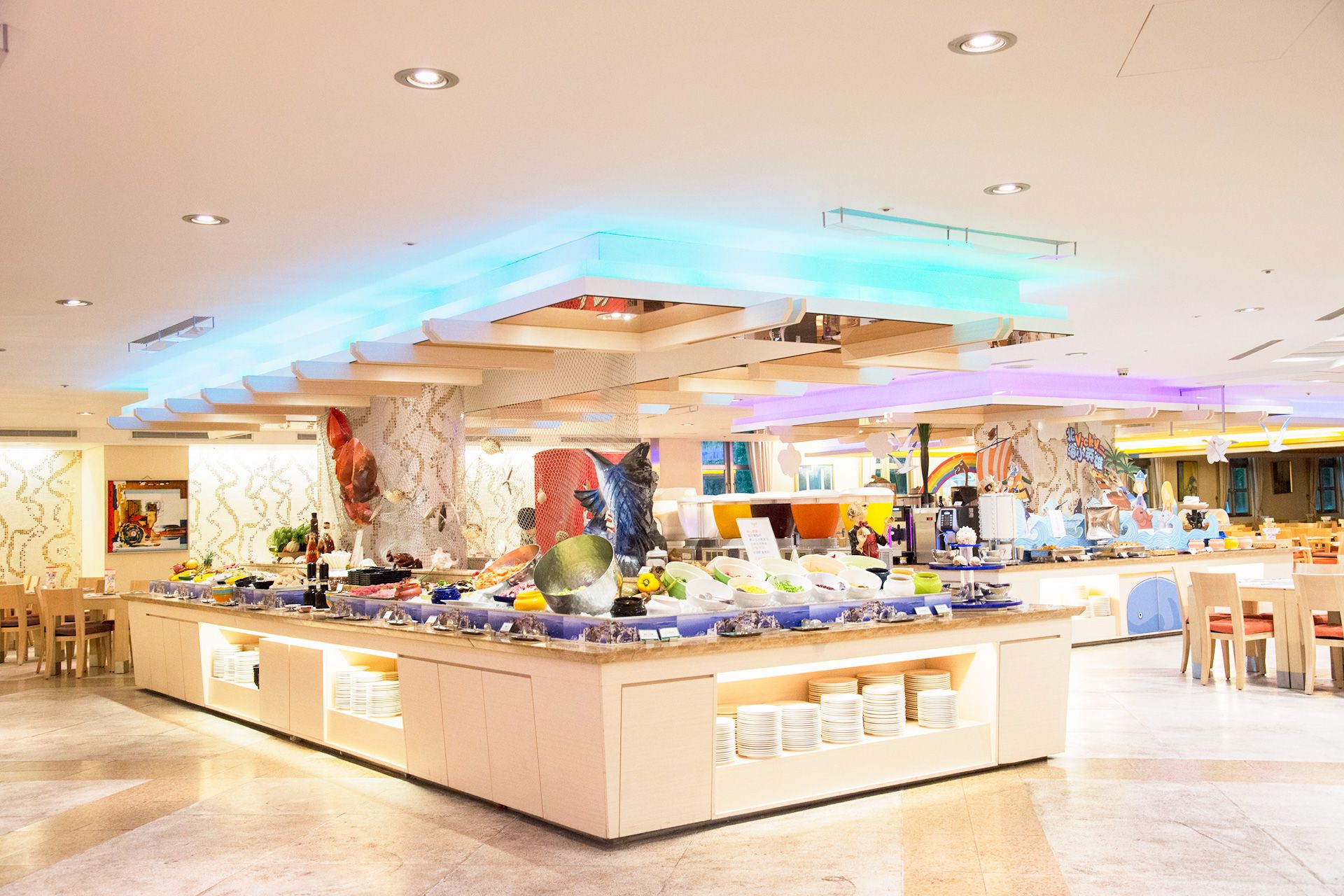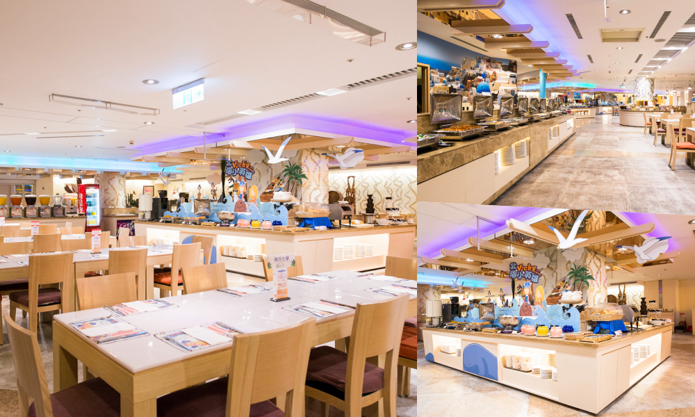 晚餐的部份我們選擇待在飯店享用,於二樓的蔚藍西餐廳,餐廳很大,最多可容納400多人的座位。