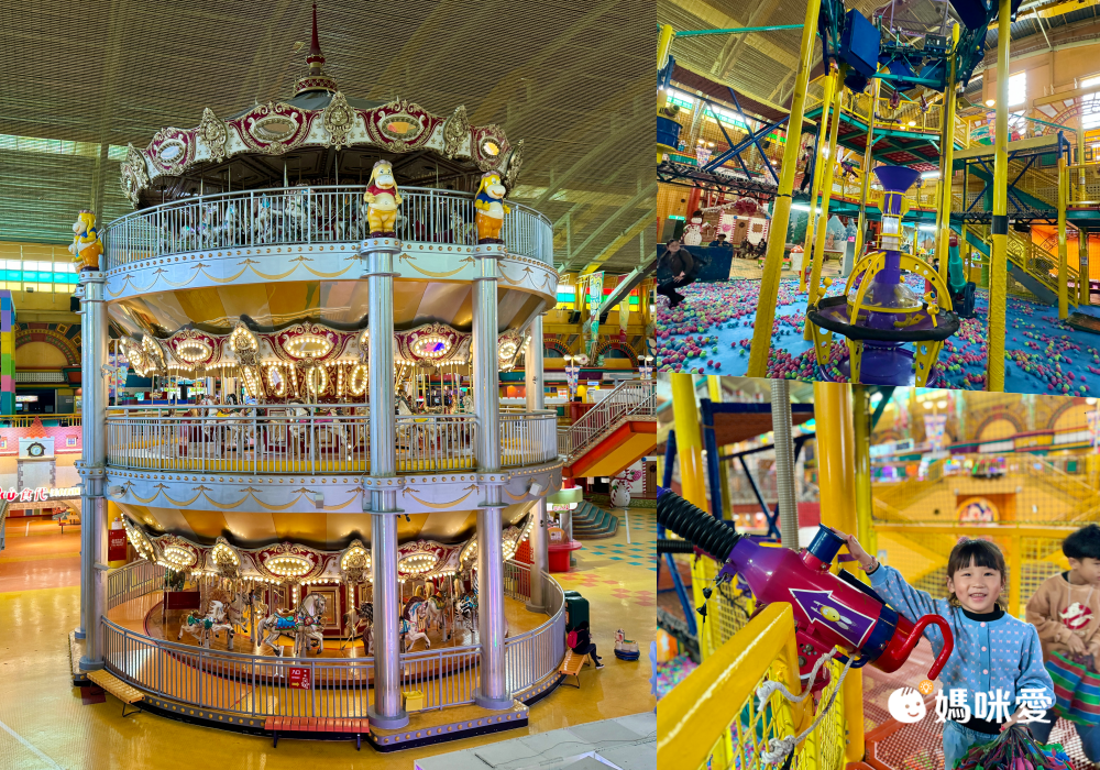 大人小孩一起同樂,和孩子們一起尖叫!實在很有趣XD嘟嘟車、飛天法寶、挑高三層樓的皇家馬車、佔地約80坪的百戰嚕啦啦泡泡球池,配備泡泡球機關槍、大型吸球器,孩子在這就可以玩很久了,根本不想走XD