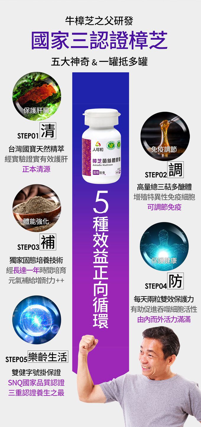 商品品名:【人可和】 國家認證樟芝(60粒/瓶)-牛樟芝之父獨家研發