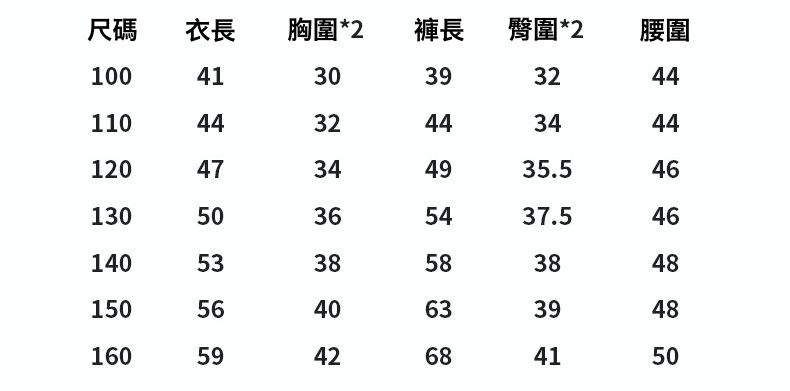 100cm、110cm、120cm、130cm、140cm、150cm、160cm
