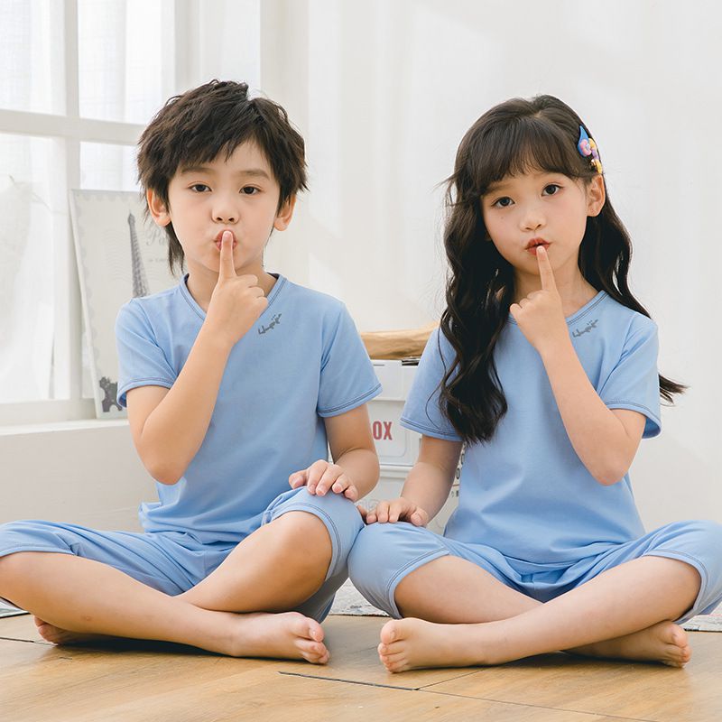 萊卡薄款短袖寬褲家居服套裝/空調服-蔚藍