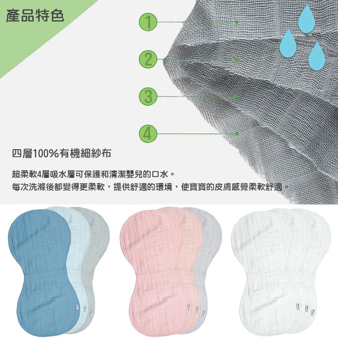 🌺 100%有機棉細紗布,四層紗做成的拍嗝巾,擁有超強吸水力,也十分細緻柔軟,使用後愈洗滌愈柔軟