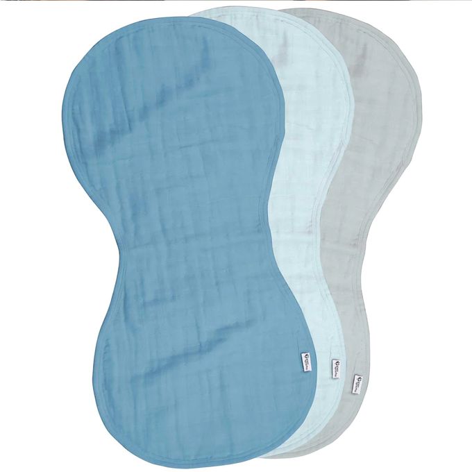 美國 green sprouts 小綠芽 - 100%有機棉四層細紗布拍嗝巾/枕巾3入組-寧靜藍