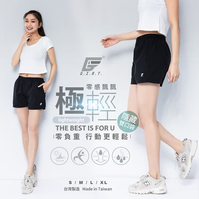 GIAT - 極輕量排汗速乾運動三分褲-女款-經典黑