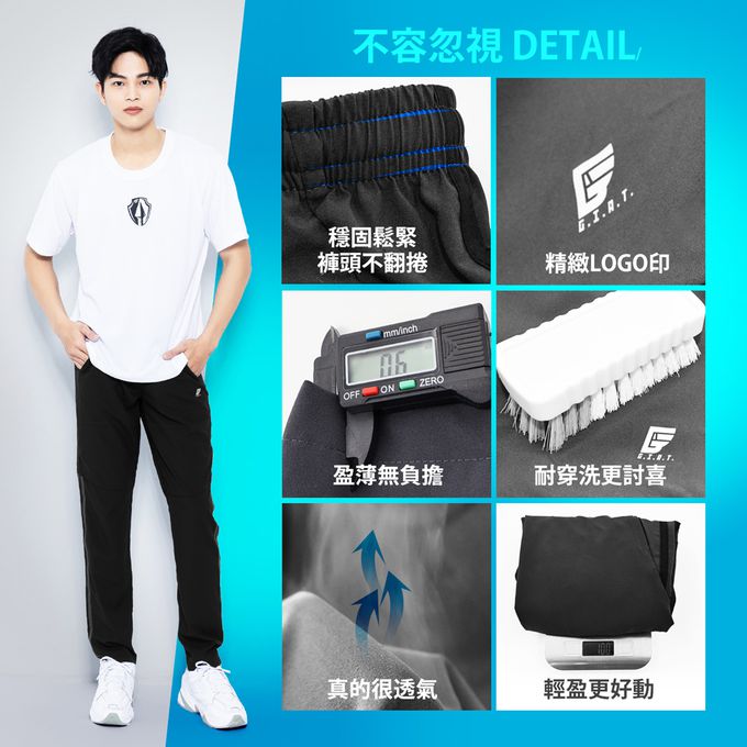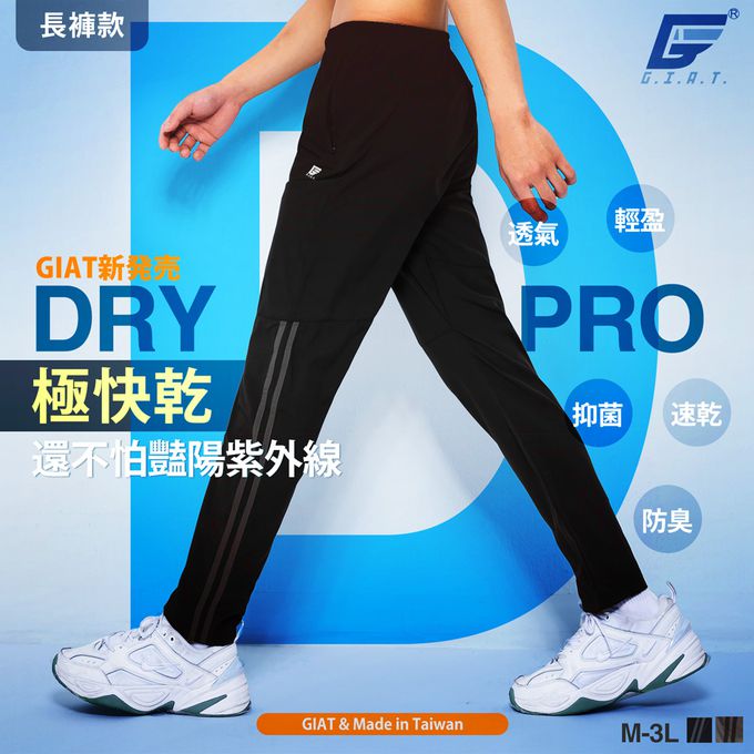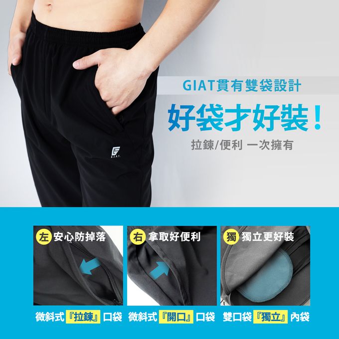 GIAT - 防曬UPF50+極輕速乾運動長褲-童束口款-水墨黑