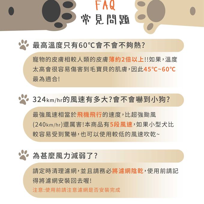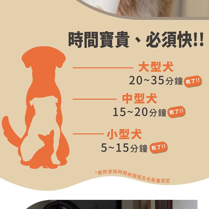 最大風速90m/s,狗毛髮吹乾只需15分鐘