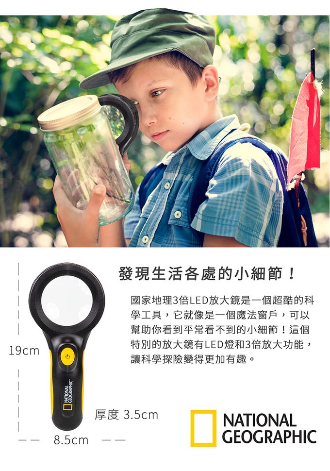 國家地理3倍LED放大鏡是一個超酷的科學工具,它就像是一個魔法窗戶,可以幫助你看到