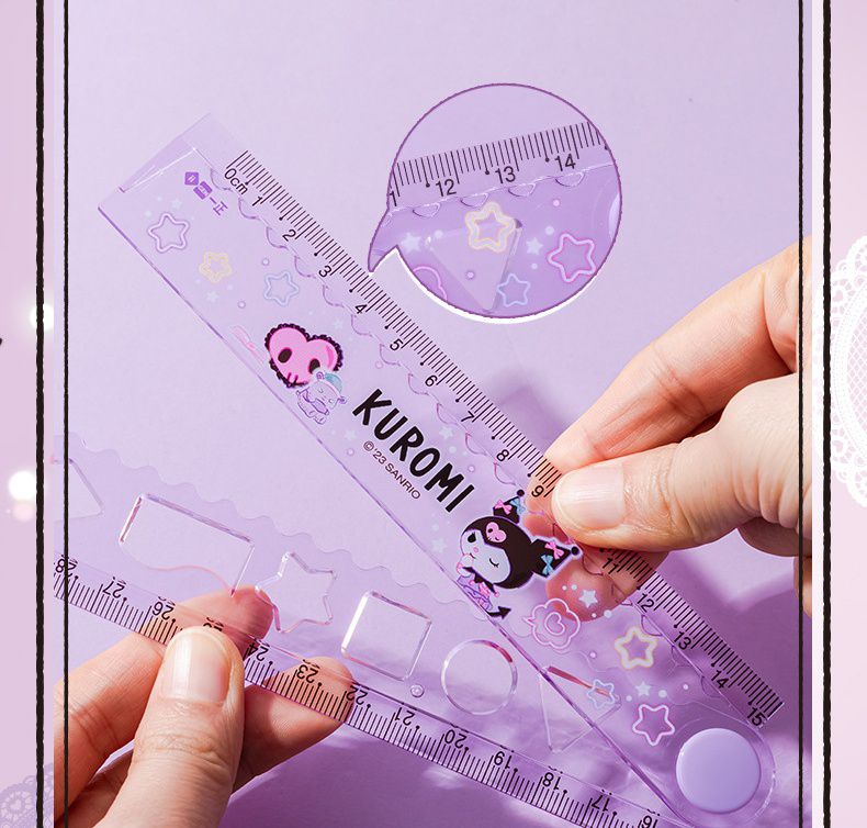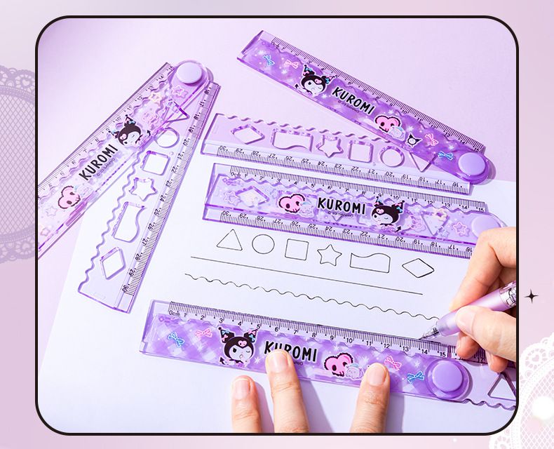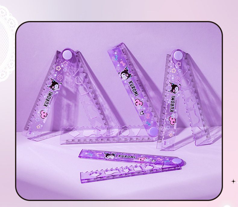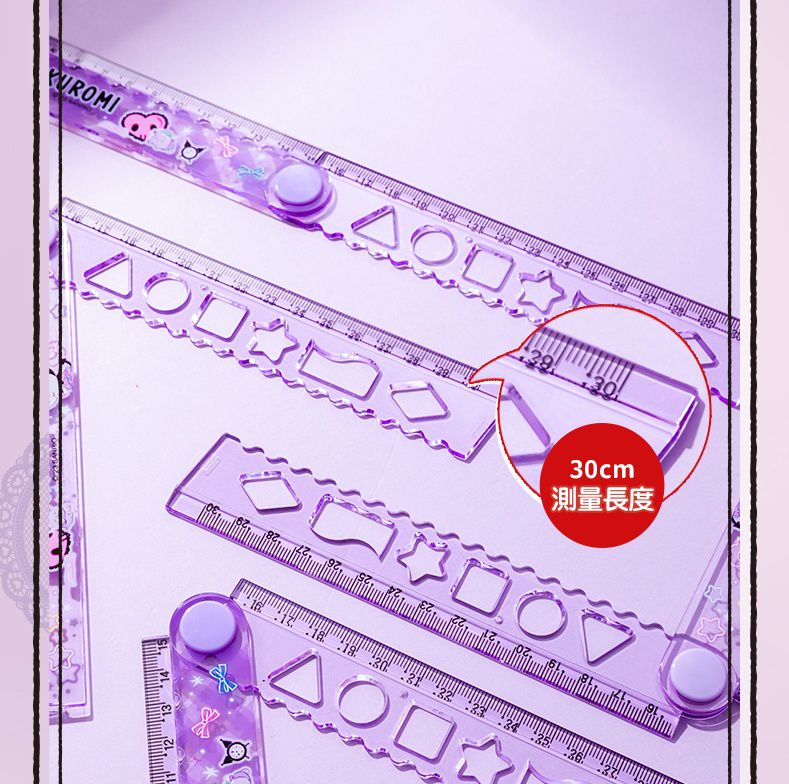卡通多功能繪圖折疊尺-卡通人物庫洛米-紫色 (展開可量30cm)