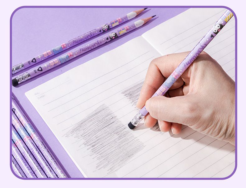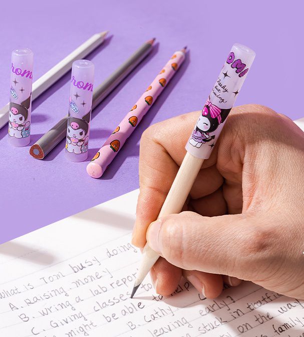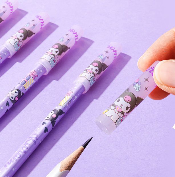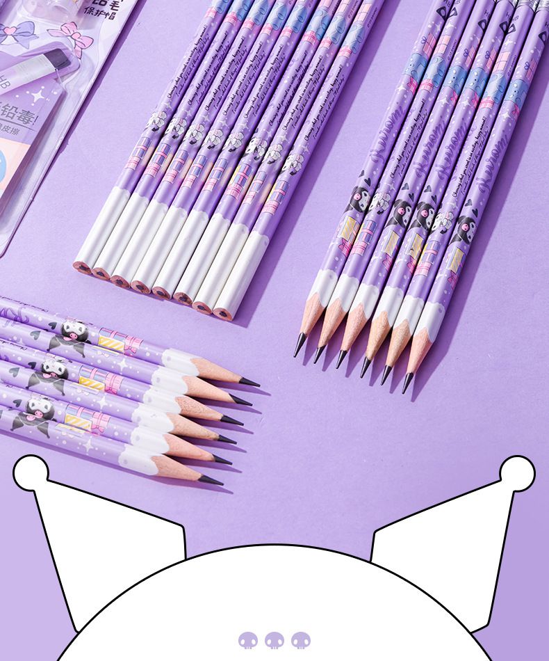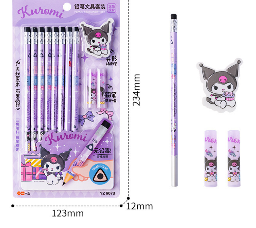 (無鉛毒)卡通HB握姿矯正三角鉛筆套組-卡通人物庫洛米-紫色 (8支鉛筆+2個鉛筆套+1塊橡皮擦)