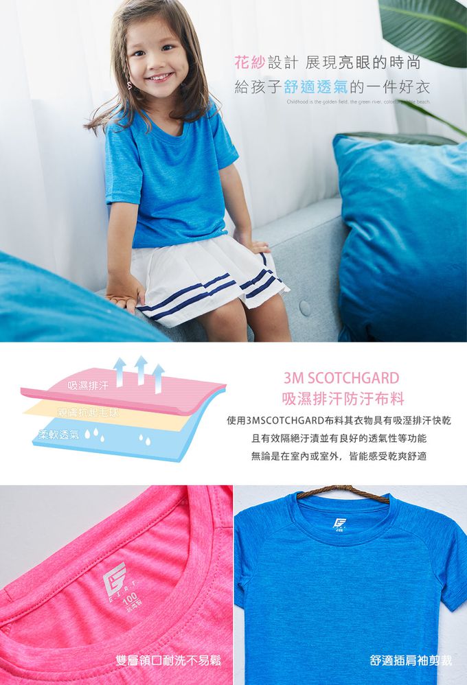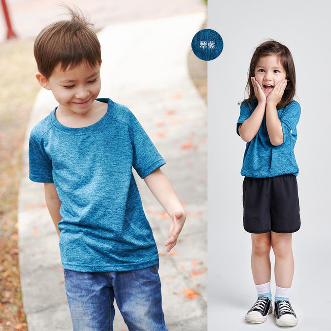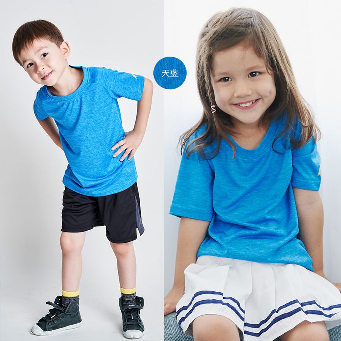 2件組-花紗排汗運動衣-童短袖款-天藍色