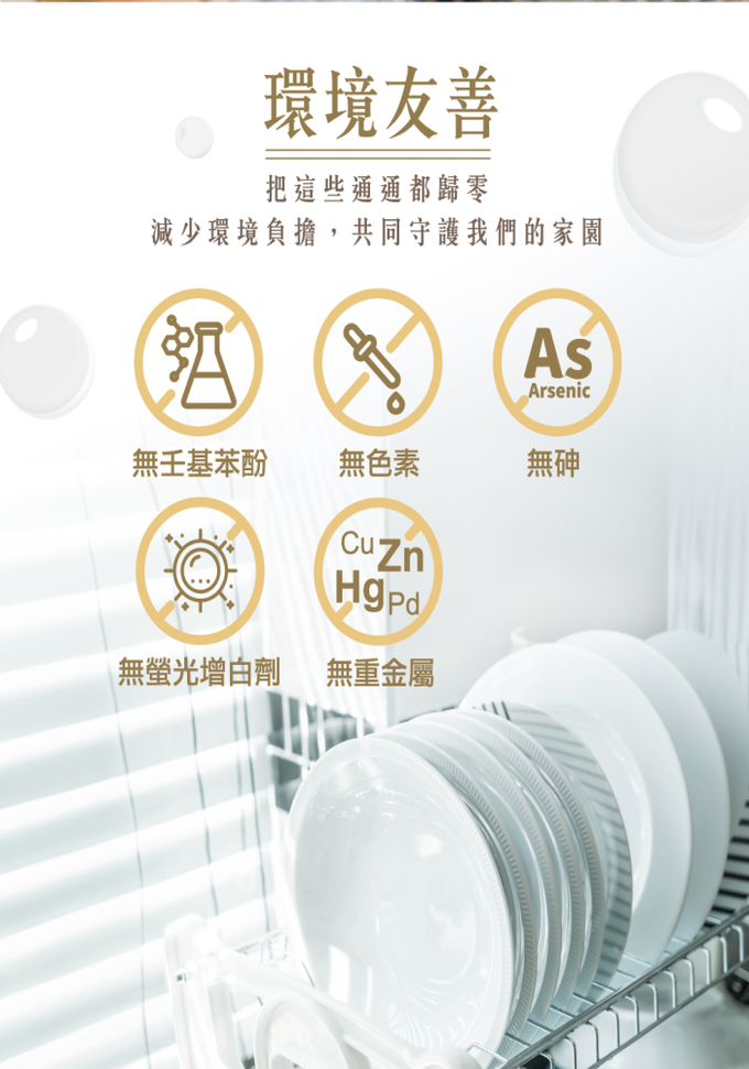 環境友善-無添加壬基苯酚類界面活性劑、色素、砷、螢光增白劑、重金屬