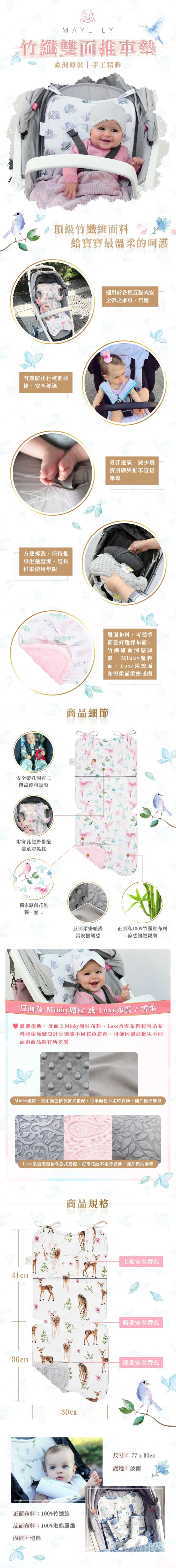 波蘭Maylily - 竹纖雙面推車墊-輕羽天堂粉 (77*30cm)