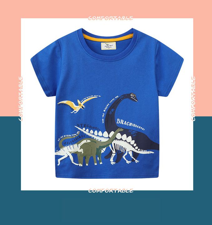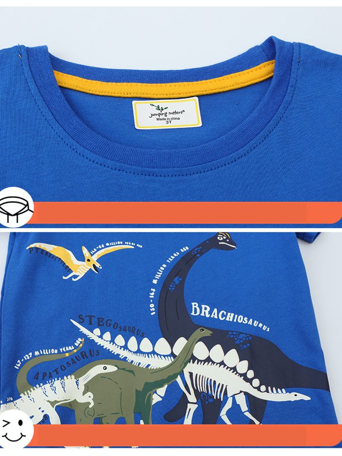 夜光圓領短袖上衣-帥氣恐龍-藍色