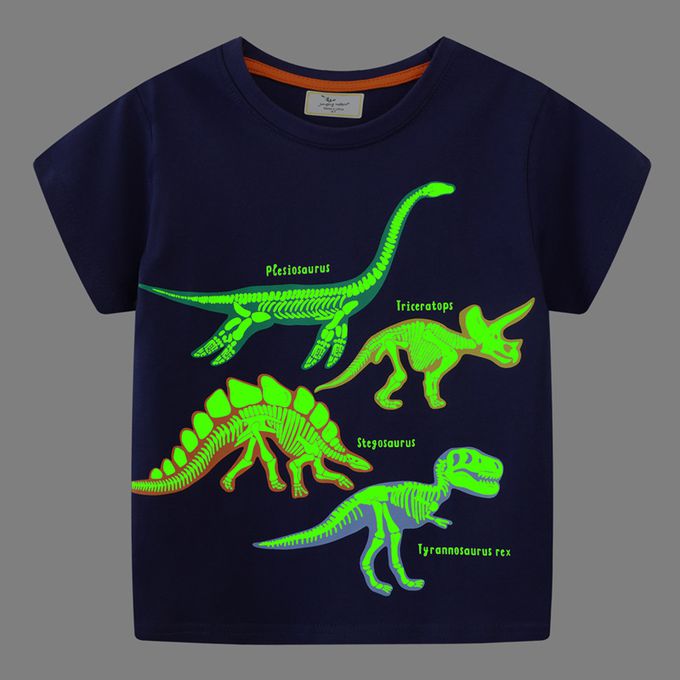 Jumping meters - 夜光圓領短袖上衣-恐龍化石展覽-深藍色