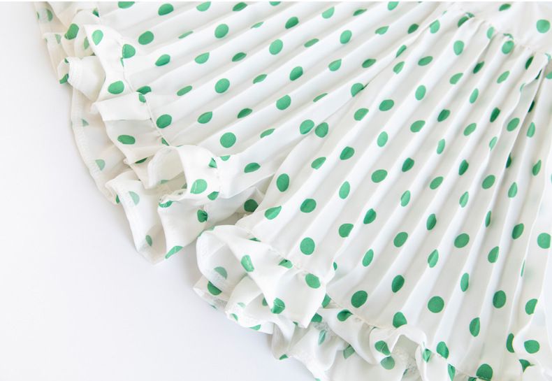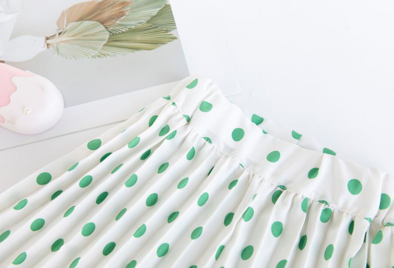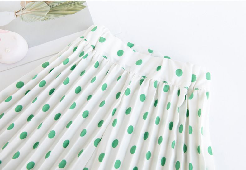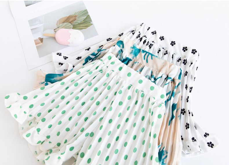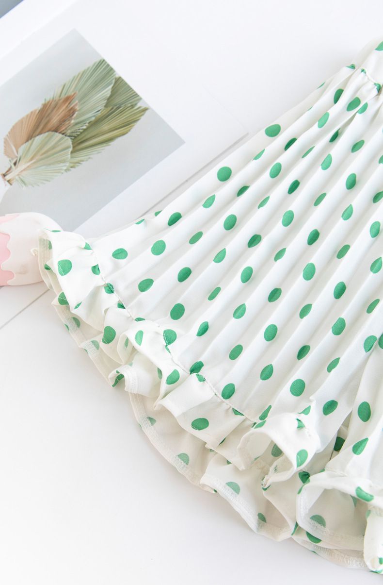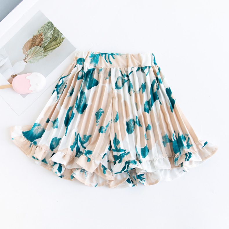 腰鬆緊雪紡皺摺五分裙褲-草綠點點