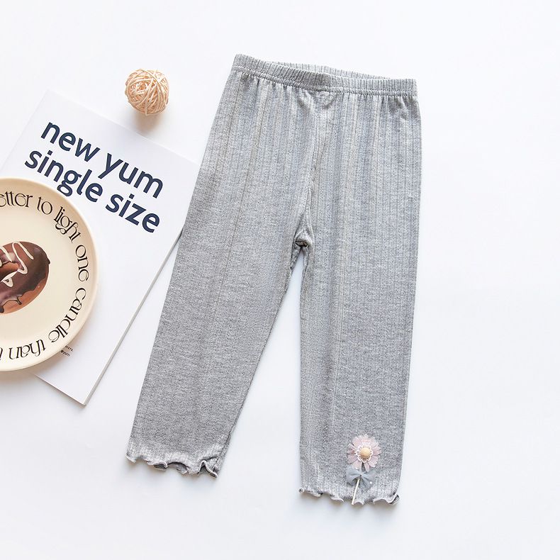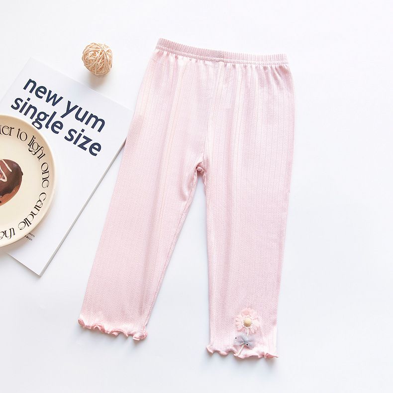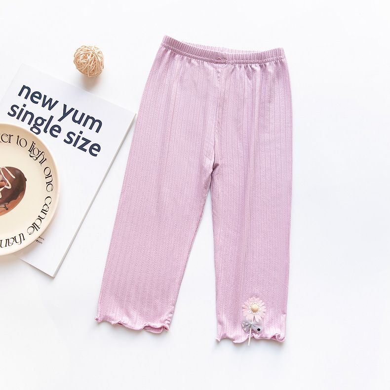 莫代爾螺紋七分內搭褲-立體花朵-紫色