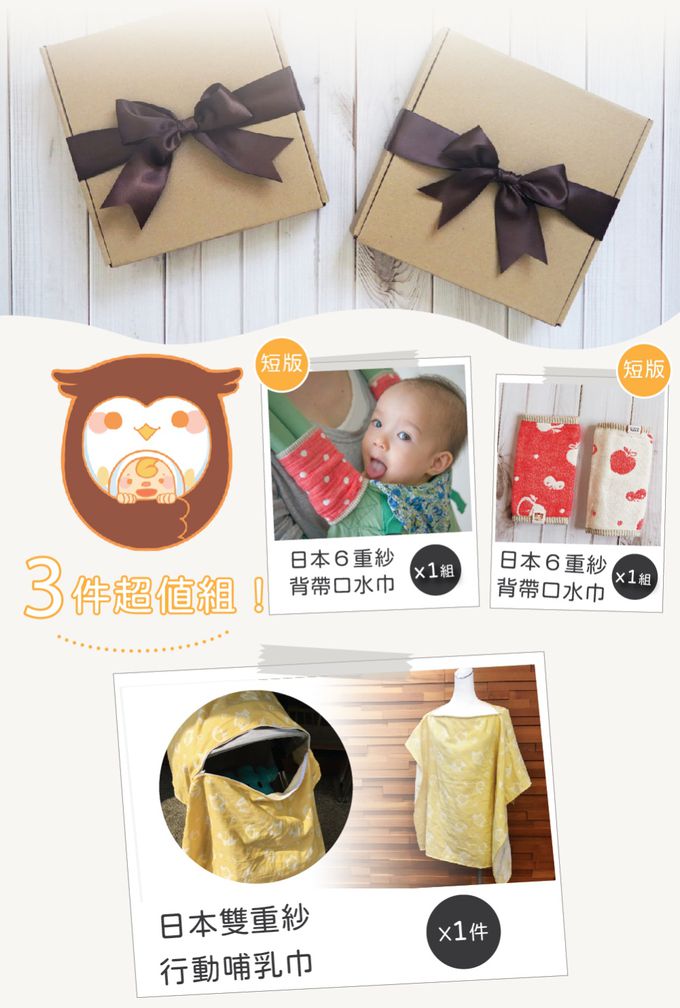 品名:台灣製現貨.新生兒哺乳巾禮盒.一點兒小心意_行動哺乳巾+六重紗背帶/推車/汽座口水巾(彌月禮盒新生兒禮物哺乳巾推車口水巾)