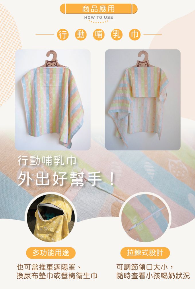 行動哺乳巾透氣不悶熱,也可當推車遮陽罩