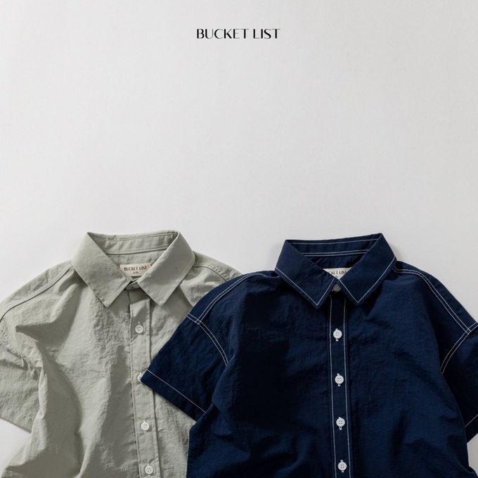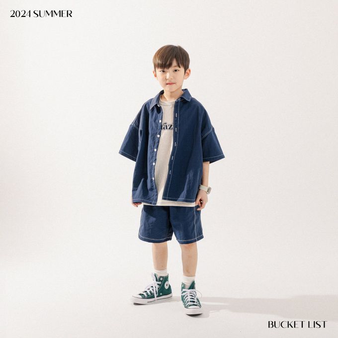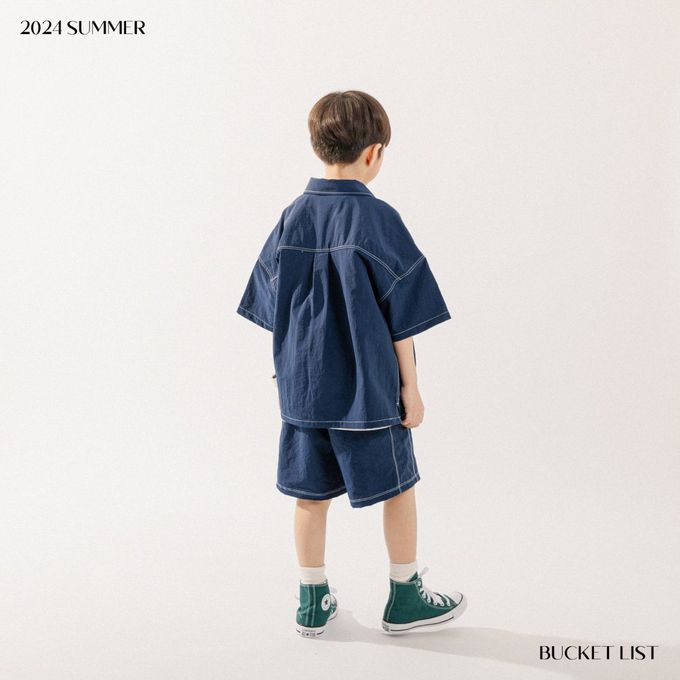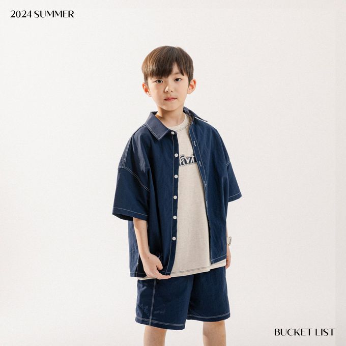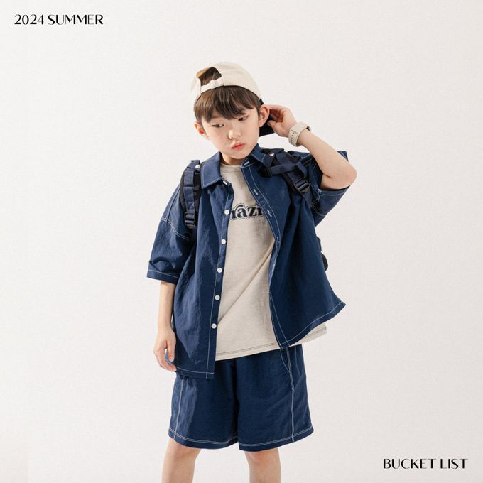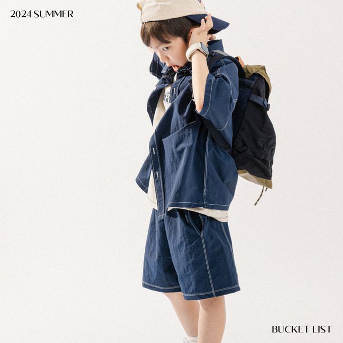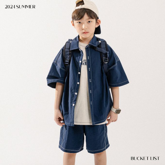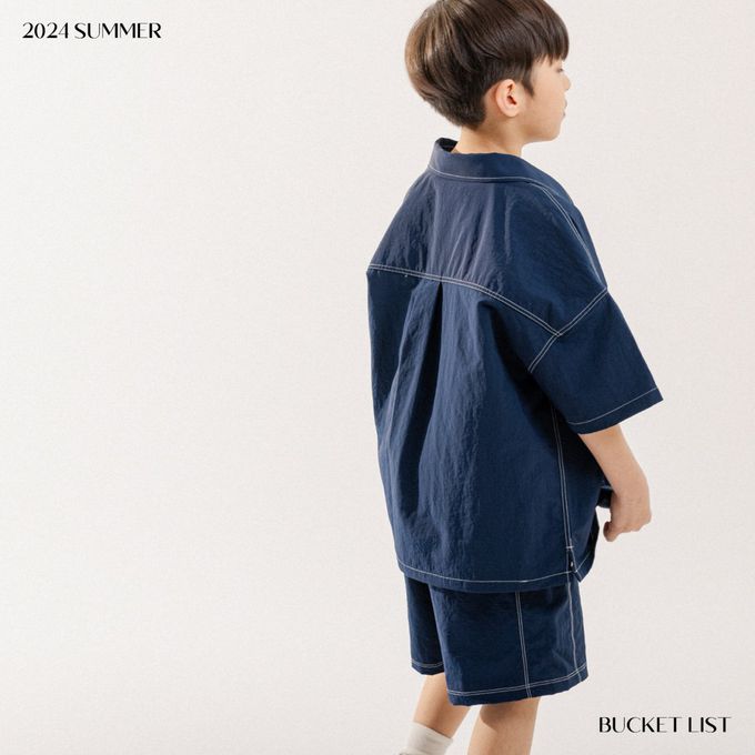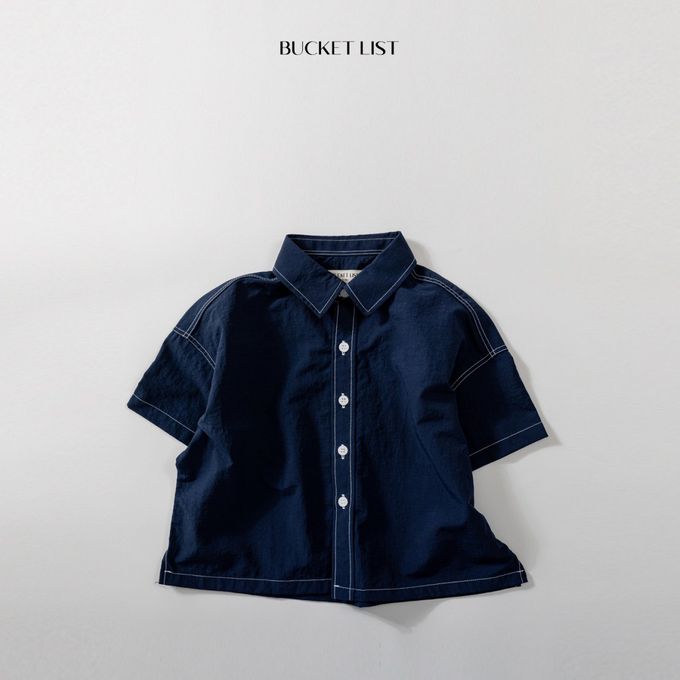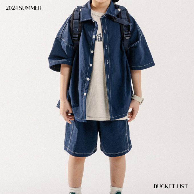 韓國 BUCKET LIST - 韓系落肩短袖襯衫/外套-海軍藍