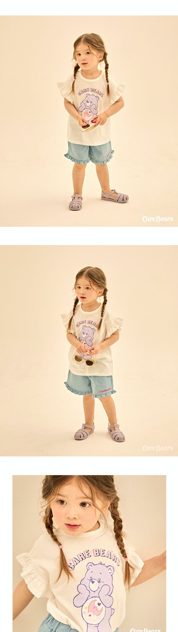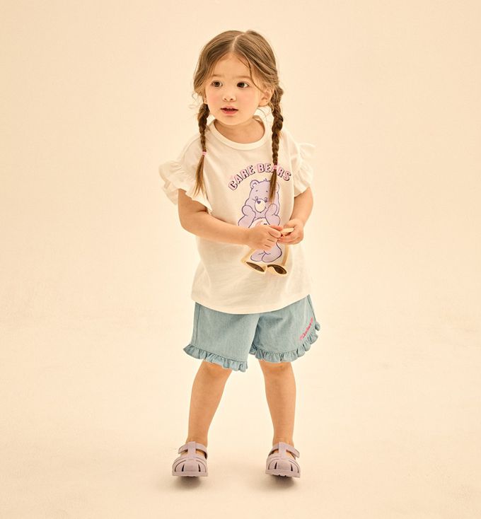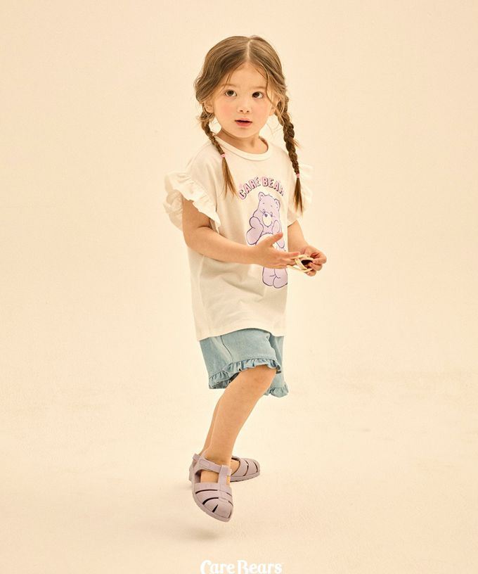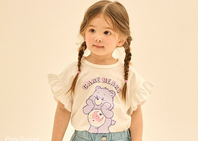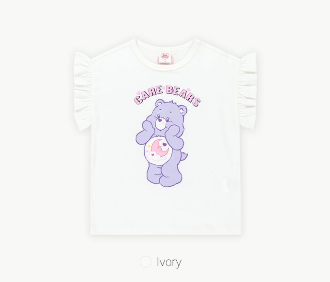 韓國 Care Bears - 聯名款可愛熊熊印荷葉袖上衣-白