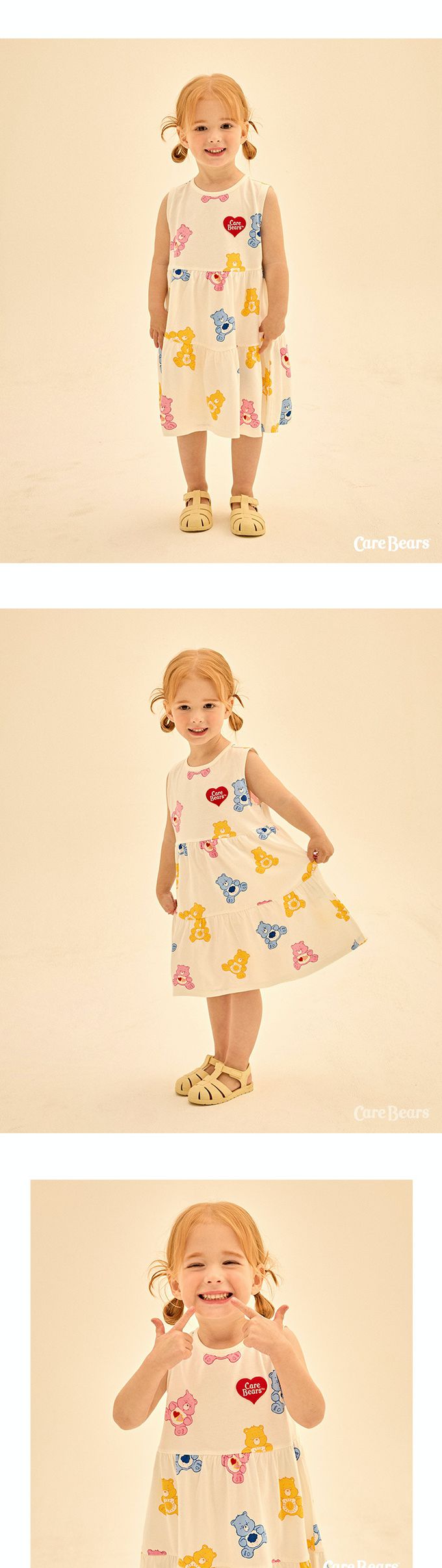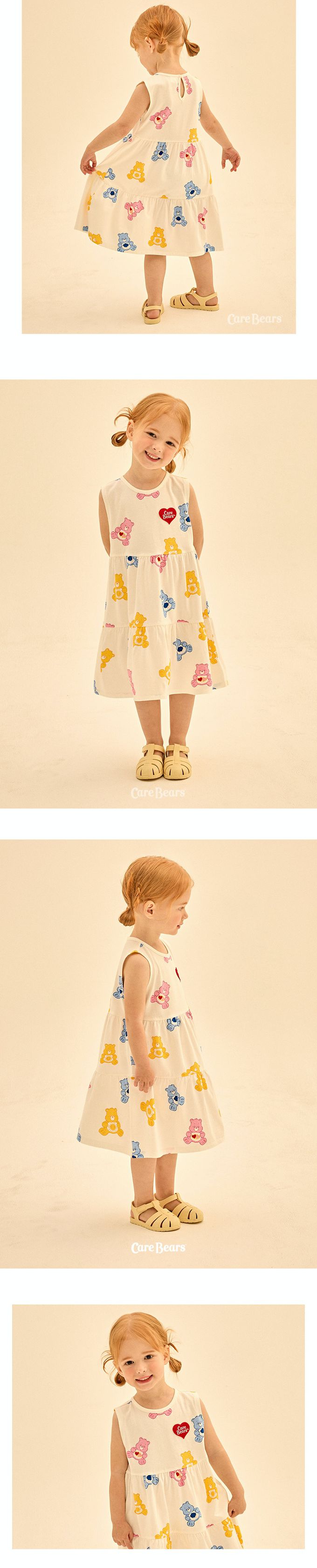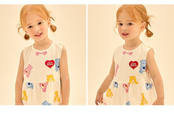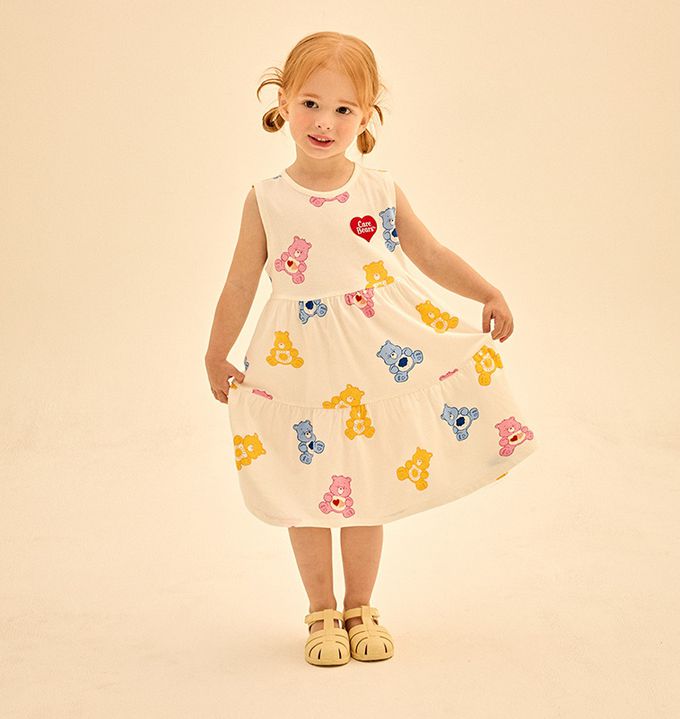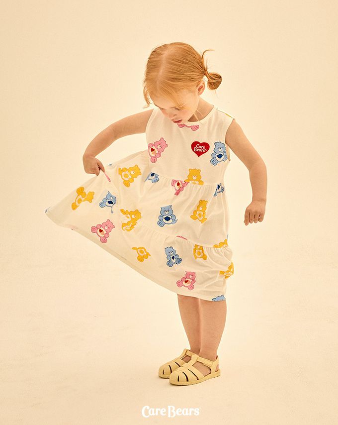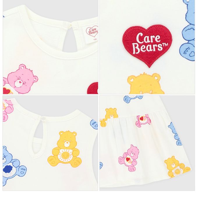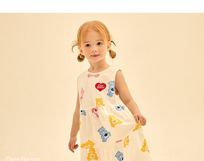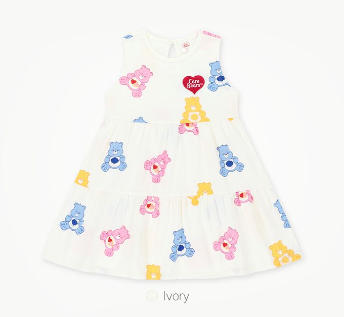 韓國 Care Bears - 聯名款滿版熊熊拼接背心洋裝-象牙白