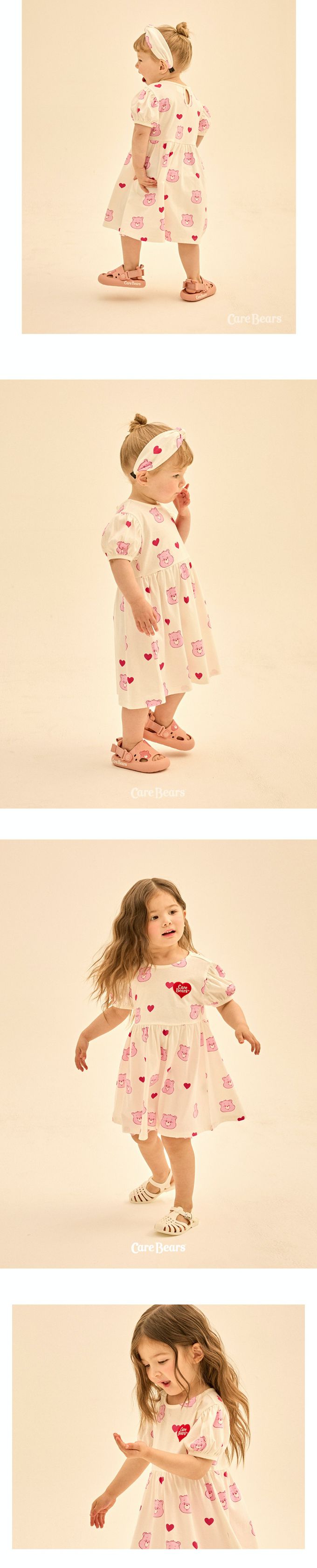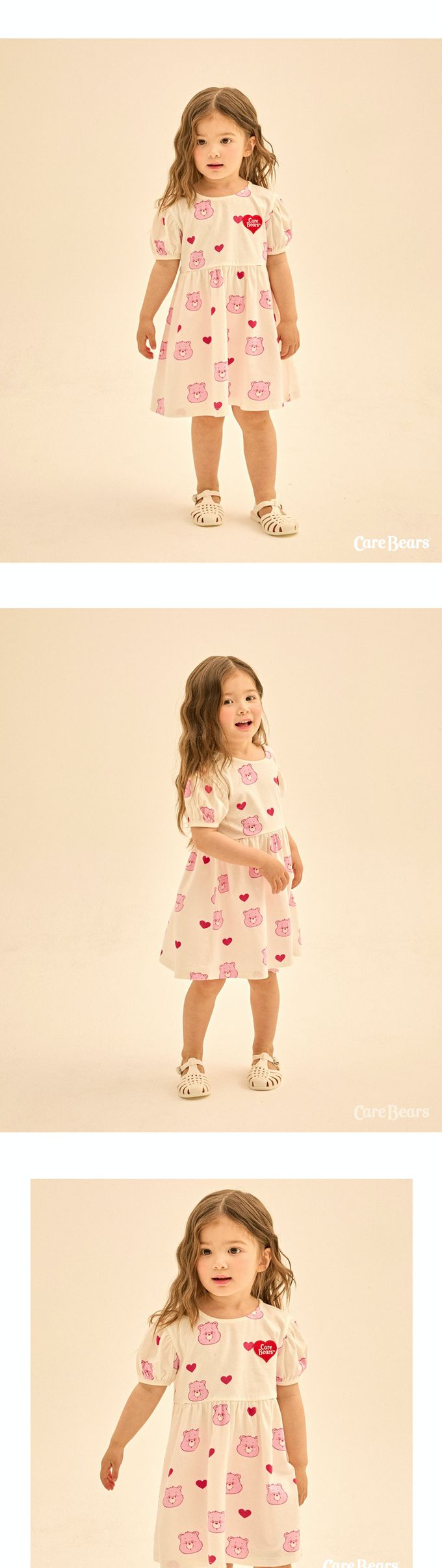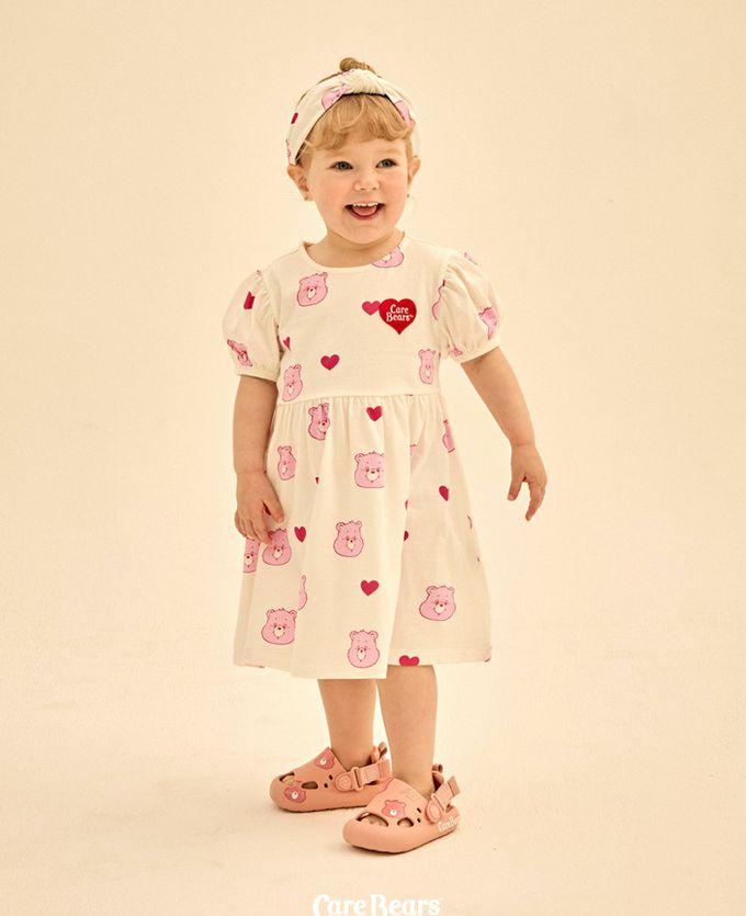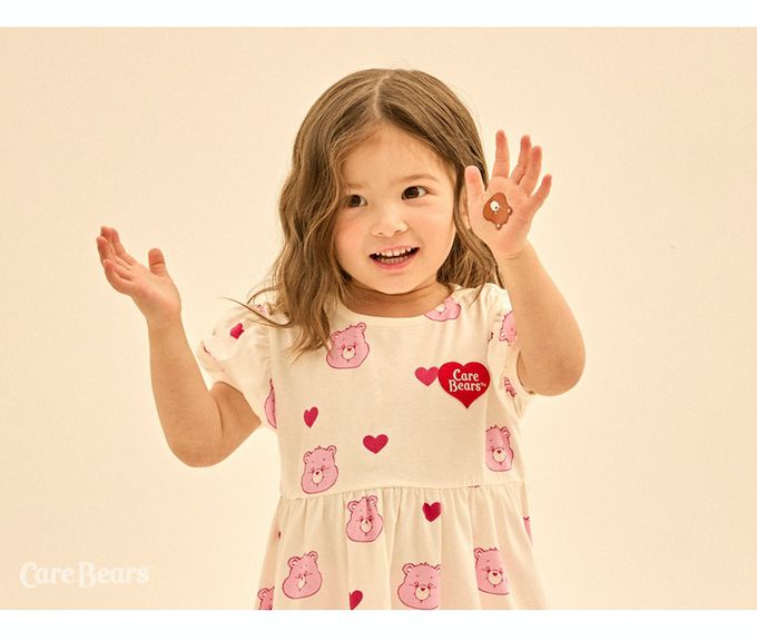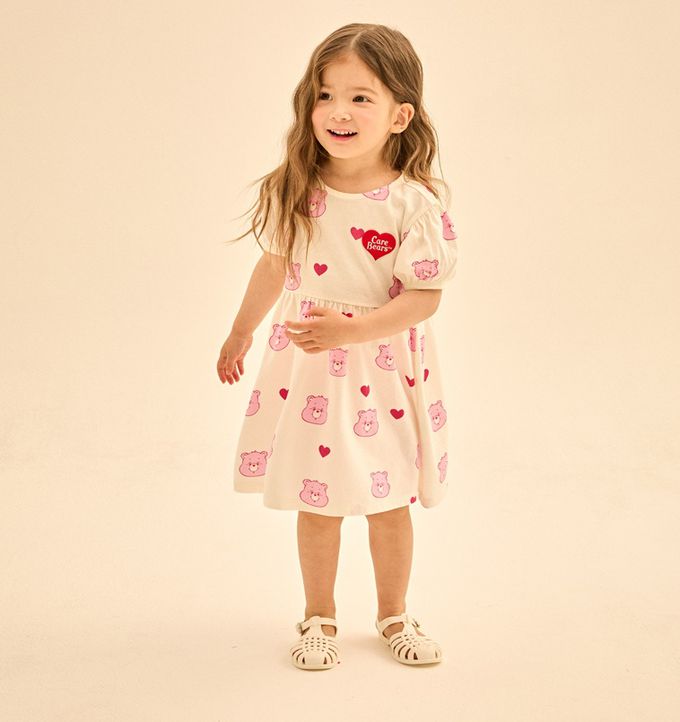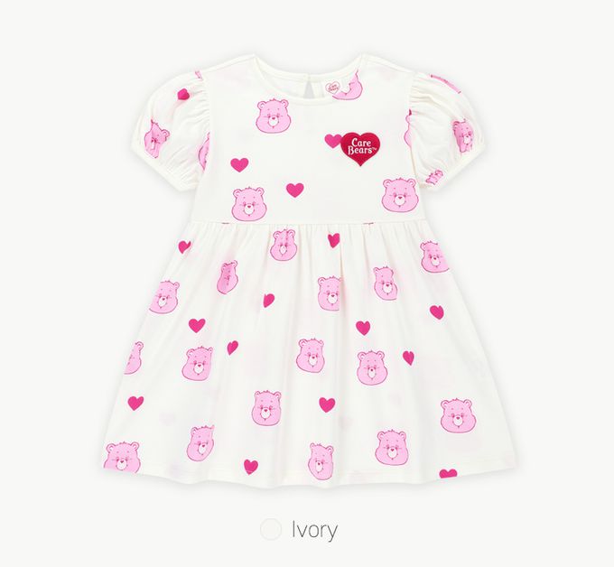 韓國 Care Bears - 聯名款愛心熊熊泡泡袖洋裝-象牙白