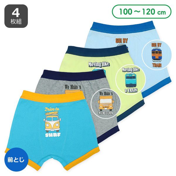 日本西松屋 - 混棉男孩四角內褲(4件組)-車車-藍綠灰
