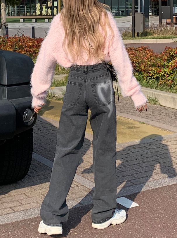 心型印花口袋休閒丹寧褲