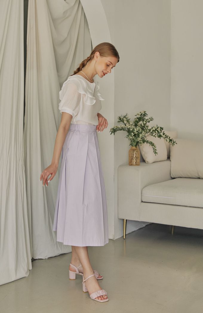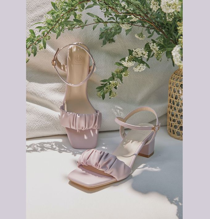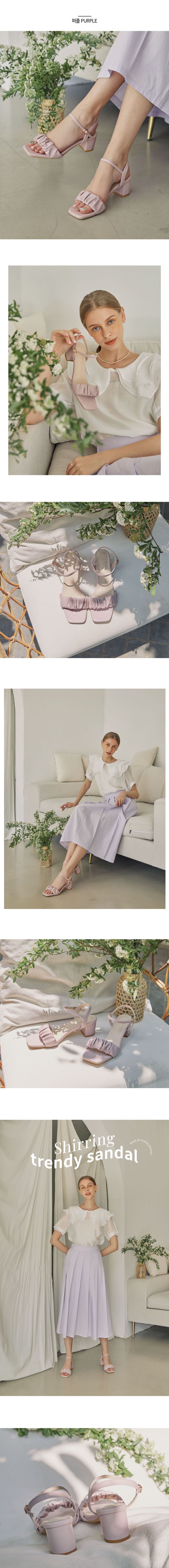 韓國 PINKELEPHANT - 皺褶感繫帶粗跟涼鞋(6cm)-薰衣草紫