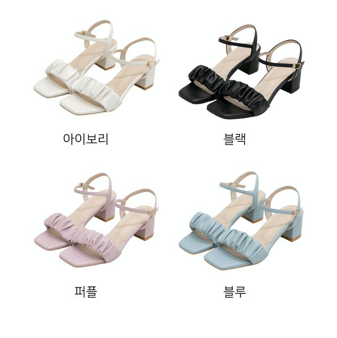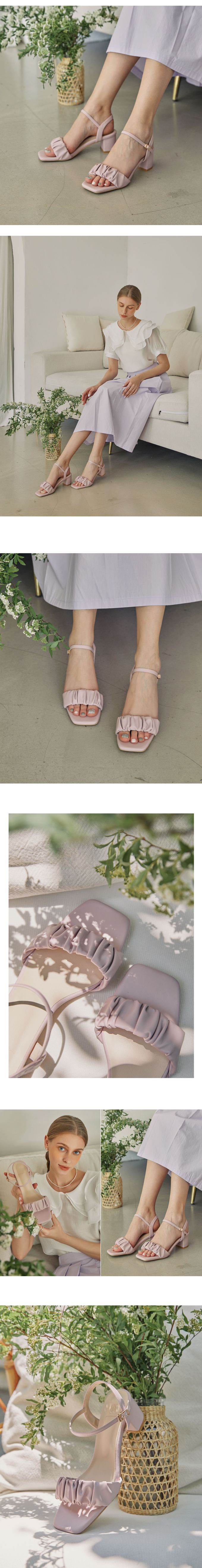 • 品名:皺褶感繫帶粗跟涼鞋(6cm)