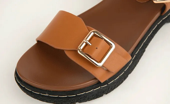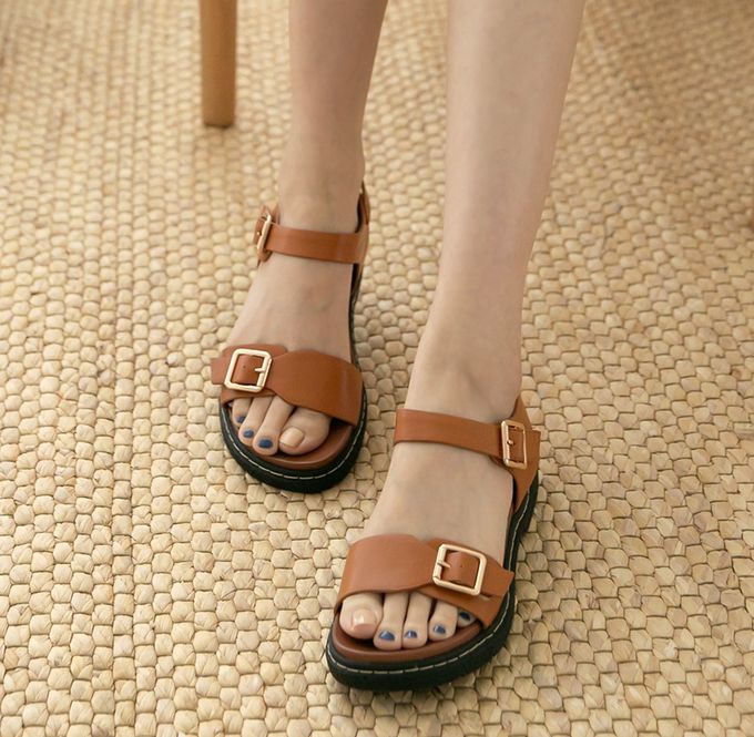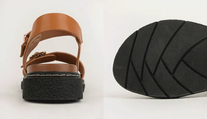 韓國 PINKELEPHANT - 率性感寬繫帶厚底涼鞋(4cm)-焦糖棕