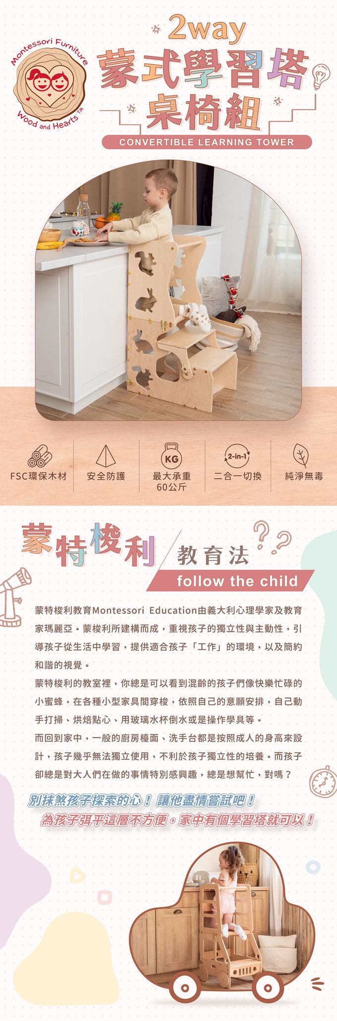 品名:2ways蒙式學習塔桌椅組
