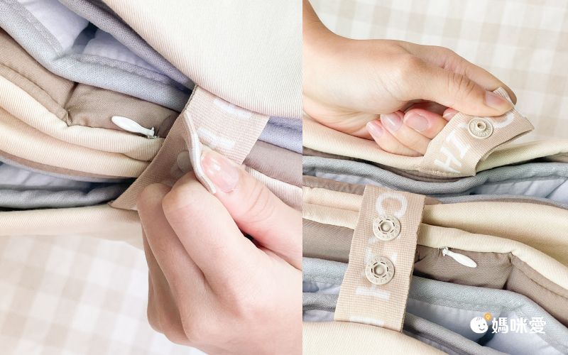 枕頭使用扣子的方式固定,拆卸與安裝更方便、孩子們更容易自己完成!