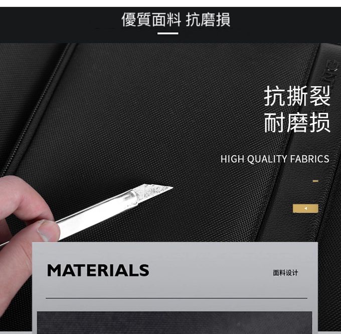 9. 材質: 聚酯纖維面料,防刮耐磨防潑水