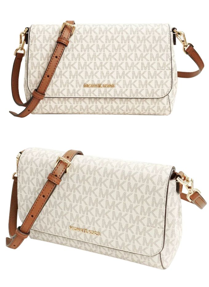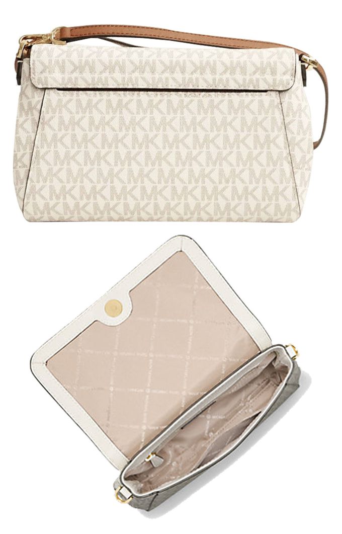 滿版LOGO皮革翻蓋斜背包 (香草白)