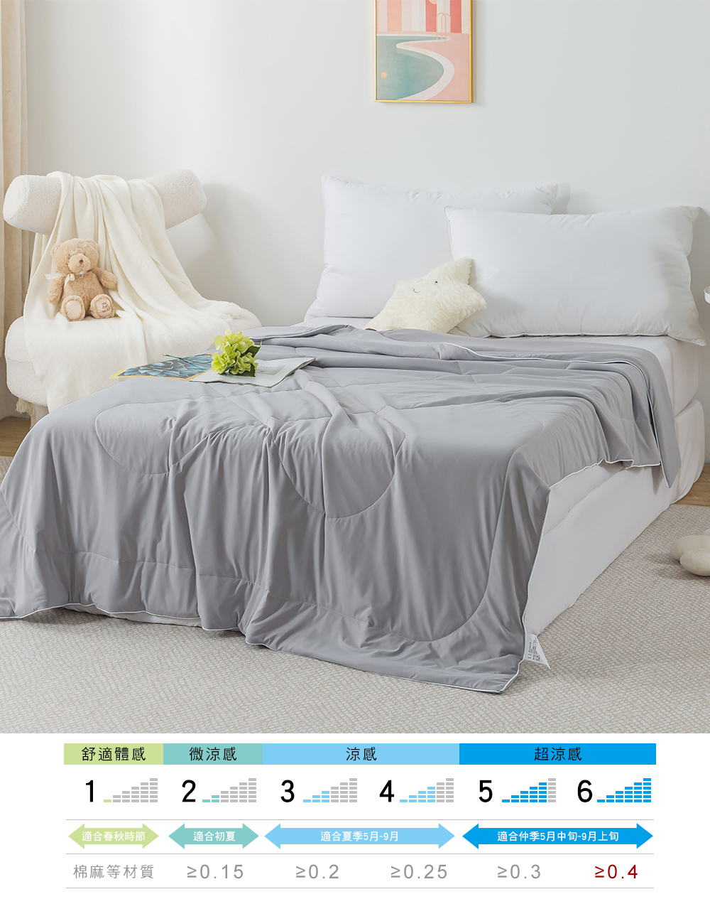◎材質:表布-涼感紗(87%錦綸+13%氨綸)/填充物-30%天絲棉+70%聚酯纖維