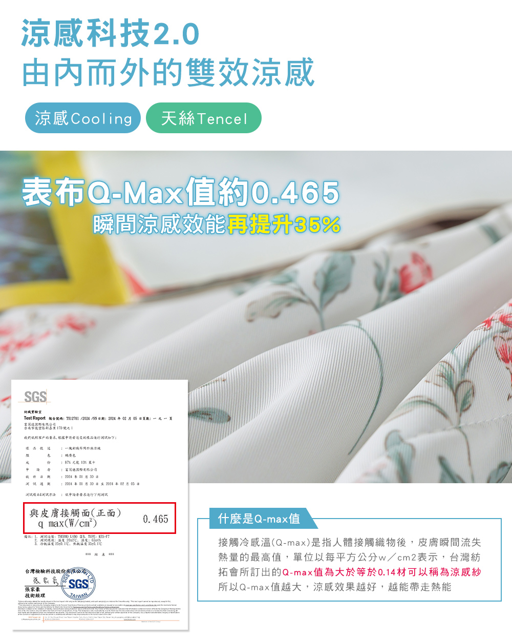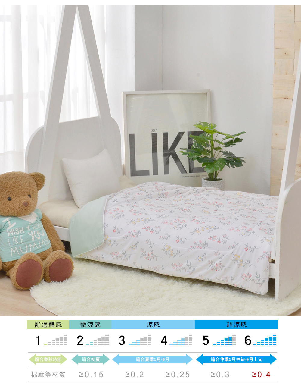 • 材質:表布-涼感紗(87%錦綸+13%氨綸)/填充物-30%天絲棉+70%聚酯纖維