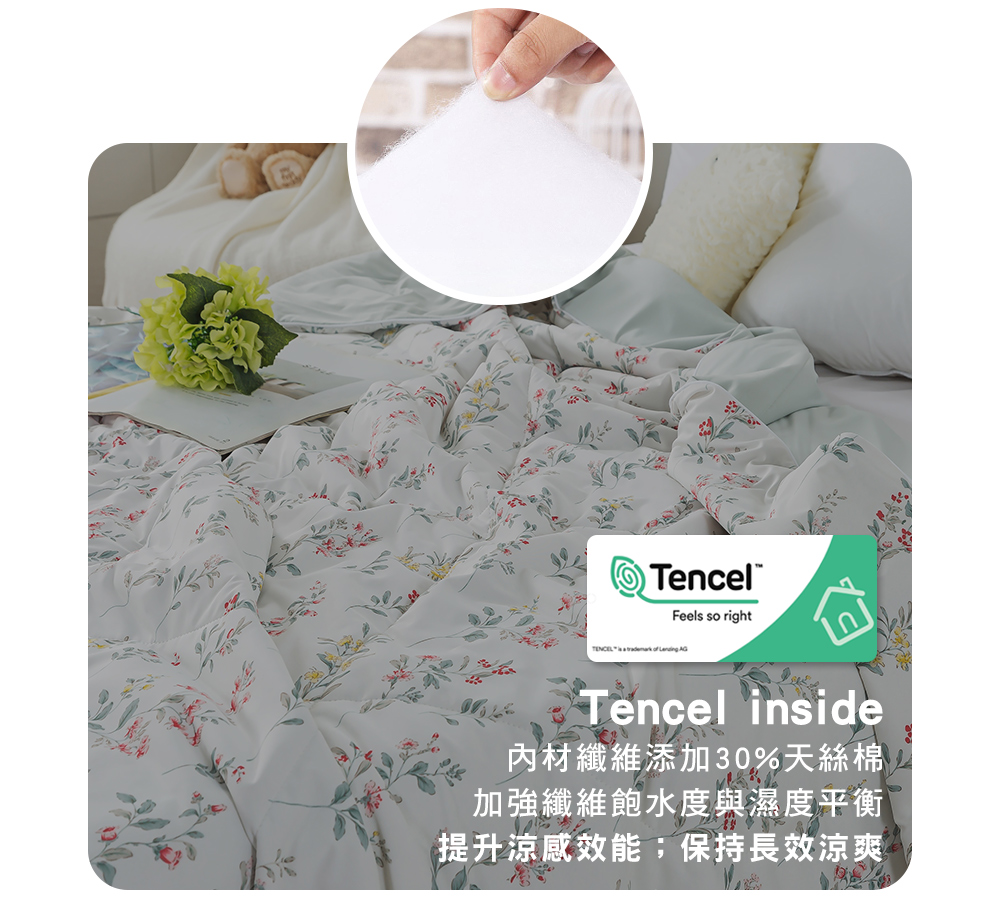 ◎材質:表布-涼感紗(87%錦綸+13%氨綸)/填充物-30%天絲棉+70%聚酯纖維