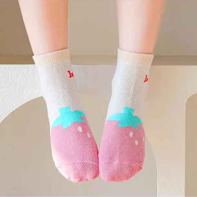 腳ㄚ子 - 幼/兒童透氣網眼襪 童襪 襪子 棉襪 兒童襪-草莓冰沙