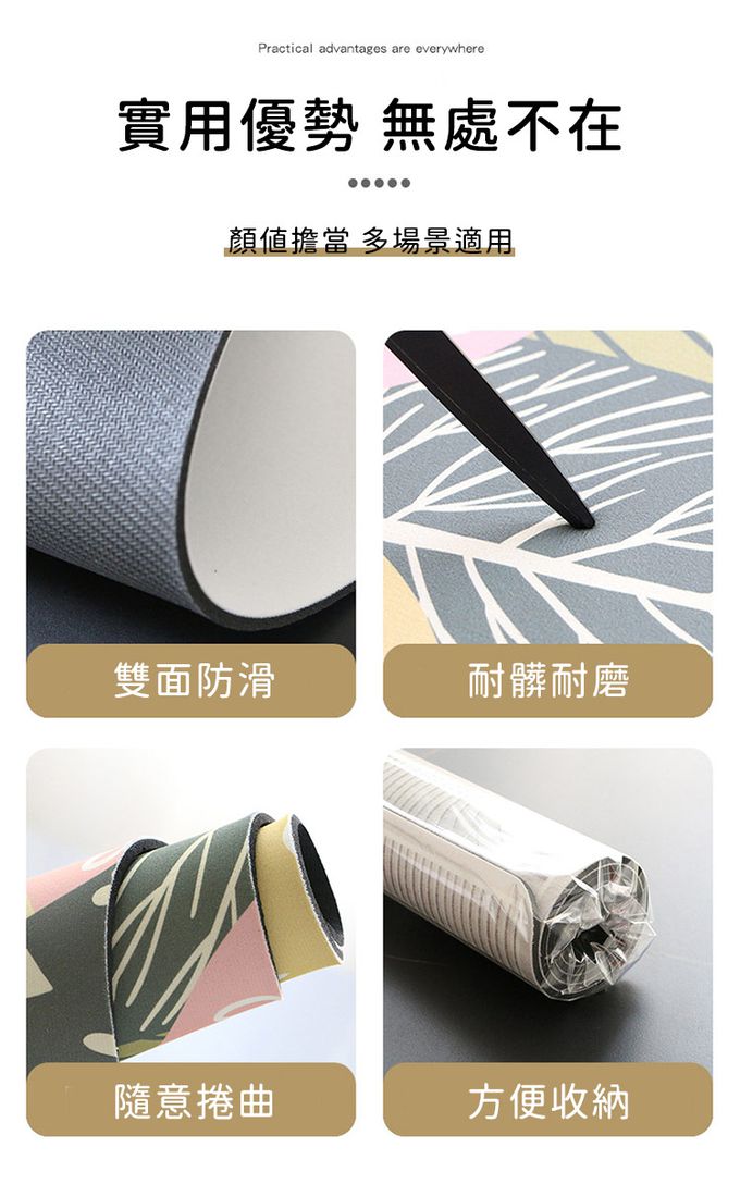 • 注意事項:1.商品到貨享鑑賞期之權益,鑑賞期並非試用期,辦理退貨商品必須是全新狀態且紙箱及商品配件包裝須完整。商品一經使用或組裝後,恕無法辦理退換貨。 2.商品為人工丈量略有1~3公分內誤差,請以實品為主。 3.網頁商品會因面板螢幕解析度不同,造成圖片顏色呈現略有不同,請以實品顏色為準。 4.商品圖為情境示意圖,本商品內容不包含擺飾物品。 5.請勿長時間放於太陽下曝曬。 6.因商品材質,新品拆封含有天然橡膠氣味,此爲正常現象,請安心使用,亦可靜置於通風處散味1-2天可消散。 7.商品可能因包裝時產生摺痕,平坦放置1-2天可恢復。 8.吸水力請勿與硬式的硅藻土地墊比較,軟式地墊需要較長時間慢慢揮發。 9.請勿使用酒精、高濃度消毒液等腐蝕性液體擦拭地墊表面。