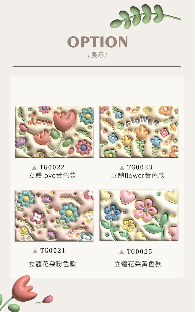 款式:立體花朵粉色款、立體love黃色款、立體flower黃色款、立體花朵黃色款