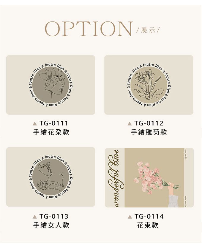 款式:手繪花朶款、手繪雛菊款、手繪女人款、花束款