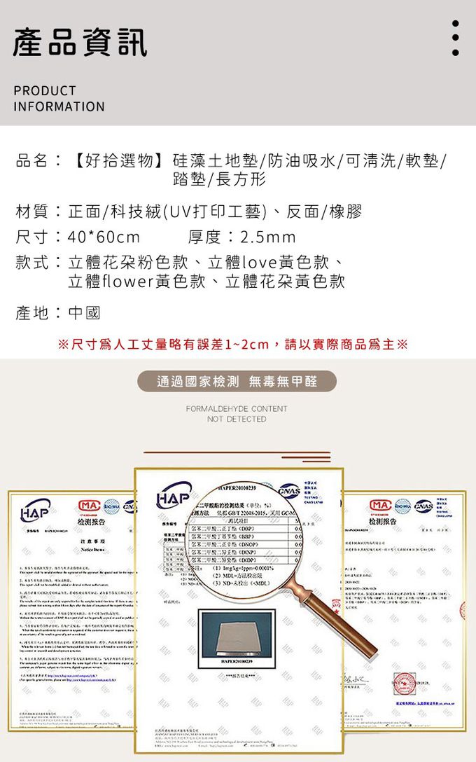 8.吸水力請勿與硬式的硅藻土地墊比較,軟式地墊需要較長時間慢慢揮發。