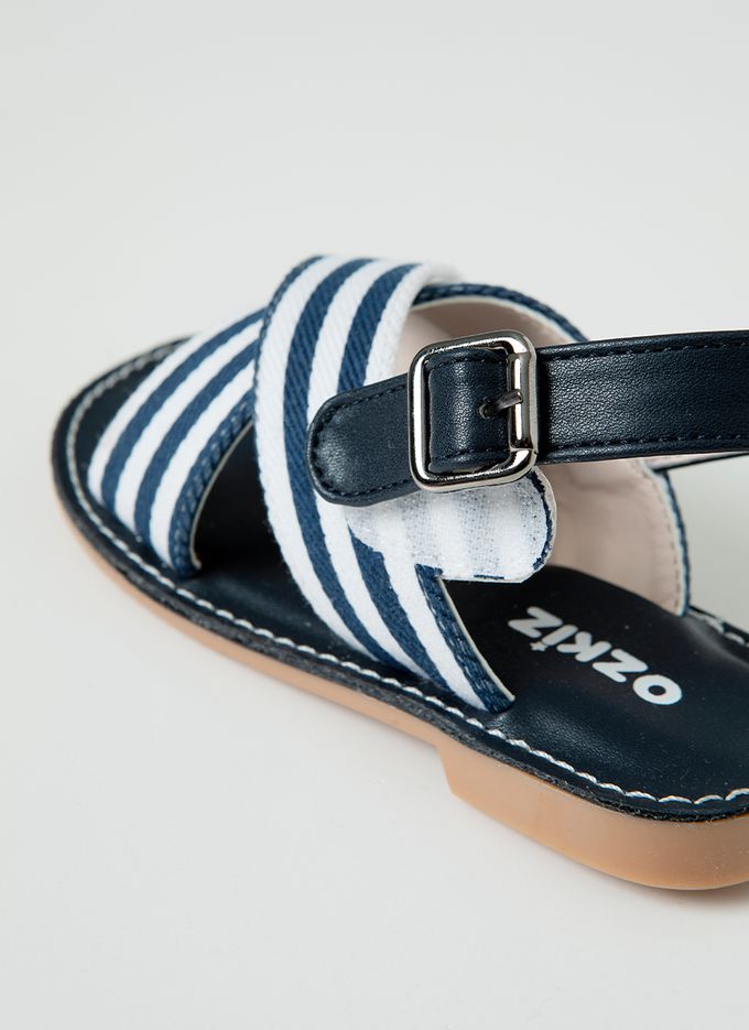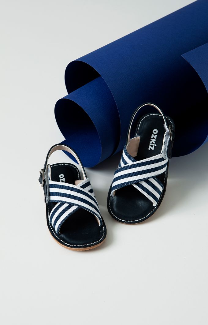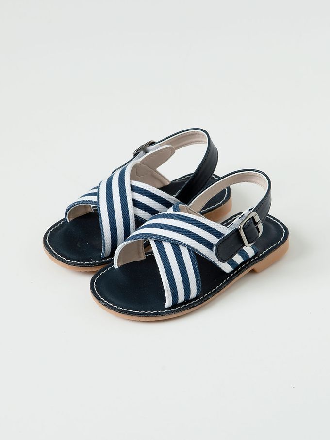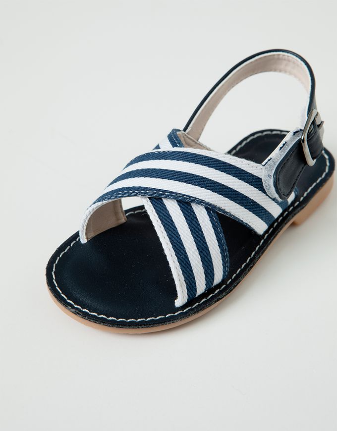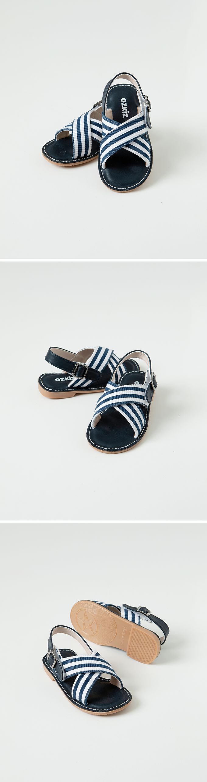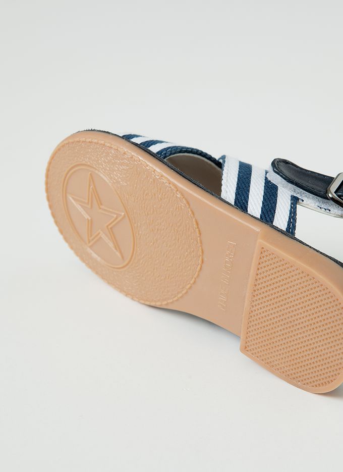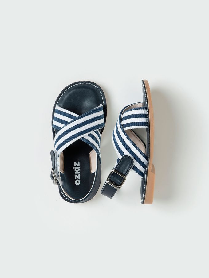 韓國 OZKIZ - 條紋交叉魔鬼氈涼鞋-海軍藍
