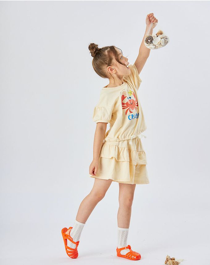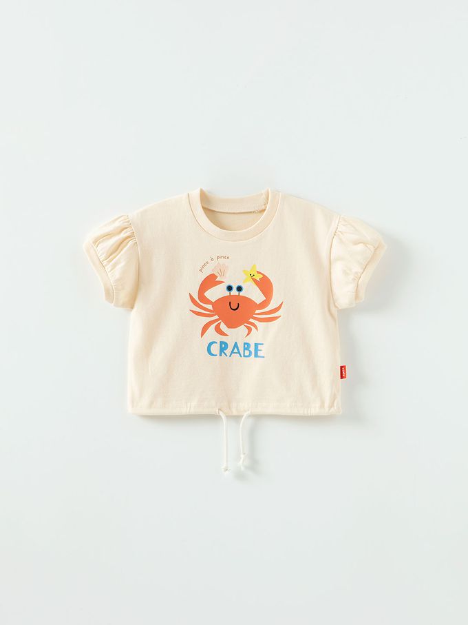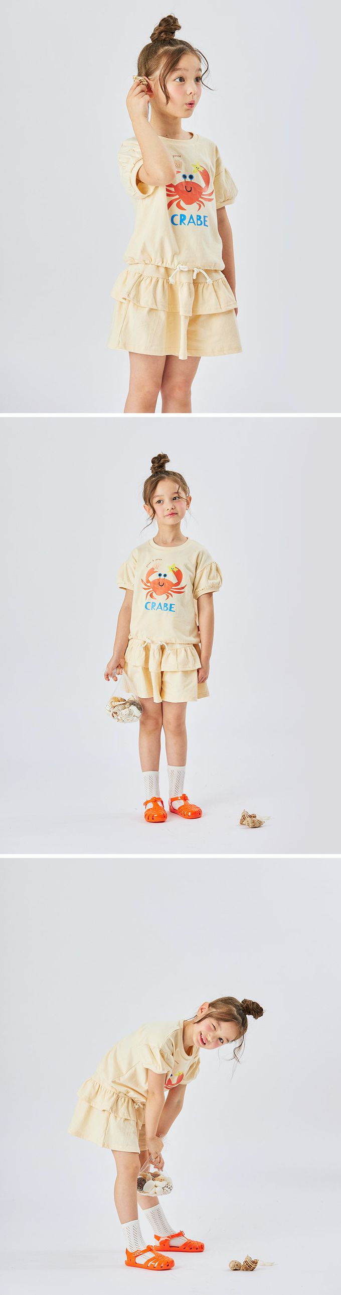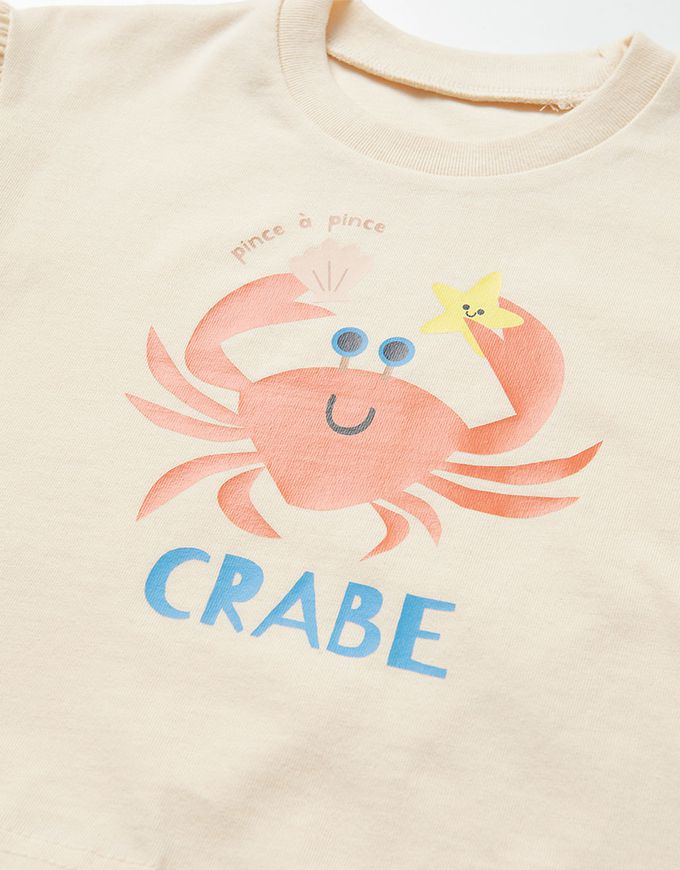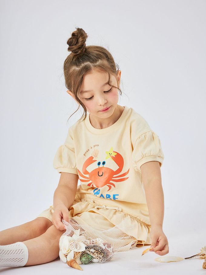 韓國 OZKIZ - 可愛螃蟹短袖層次短褲套裝-米杏