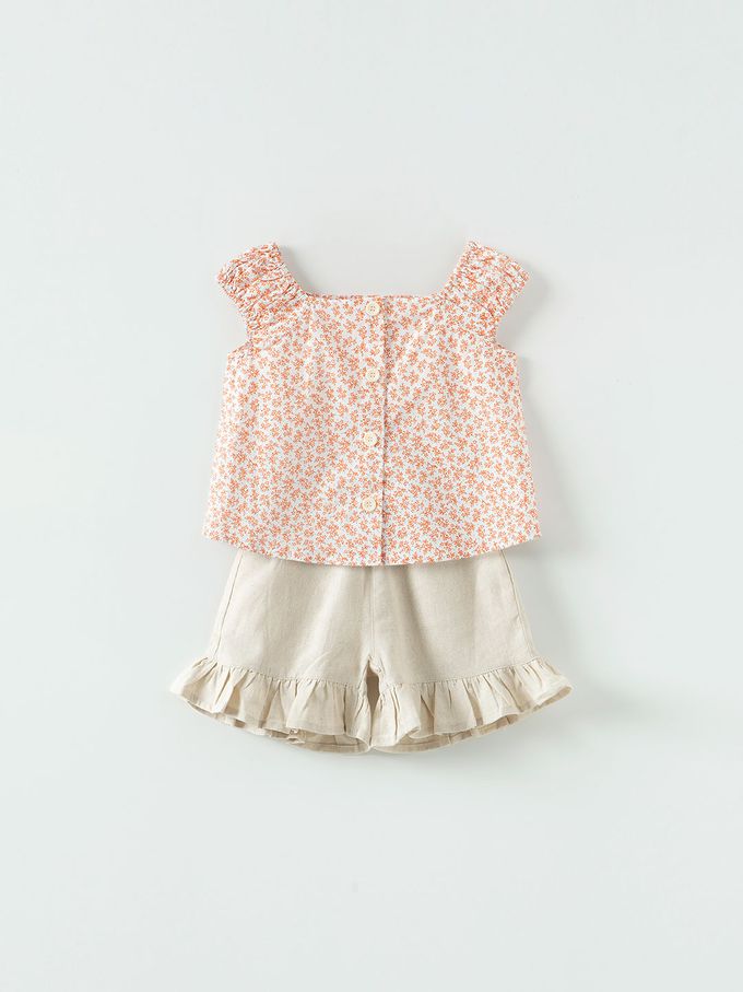 韓國 OZKIZ - 夏日橘花背心短褲套裝
