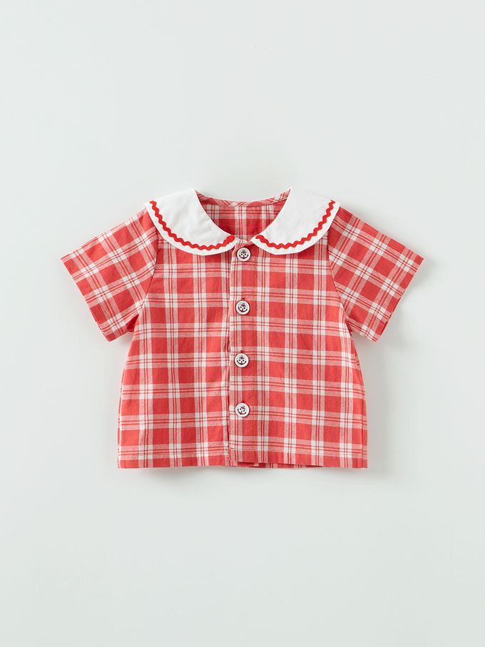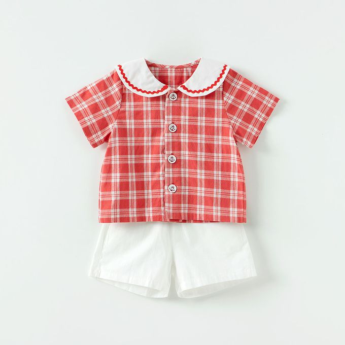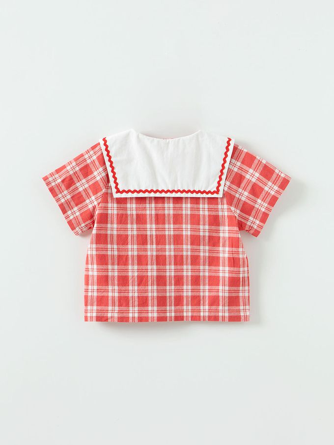 • 品名:水手格紋短袖短褲套裝
